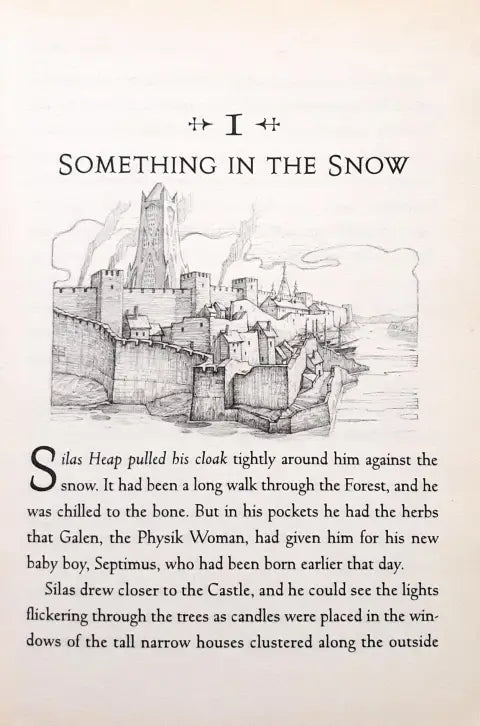 The book begins with the Heap family celebrating the birth of their seventh son, Septimus, who is destined to be a powerful wizard. However, an evil plot unfolds as the wicked Queen seeks to take over the kingdom. The Queen’s machinations result in the abduction of Princess Jenna, who is secretly the daughter of the former Queen.